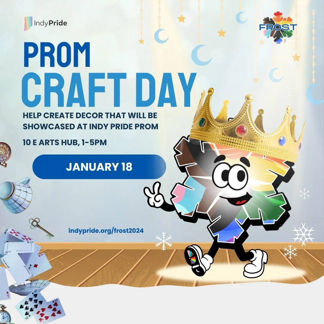 Were you a part of your high school Prom planning committee? Did you always want to be?? Join Indy Pride at the 10 East Arts Hub as we prepare for our LGBTQ+ Adult Prom - happening January 25th at The Alexander - with a day of crafting and community! We will be building, painting, and creating many different decorations and photo opportunities. Let your creative vision shine as we bring a magical winter wonderland to Indy. All ages and experiences welcome!