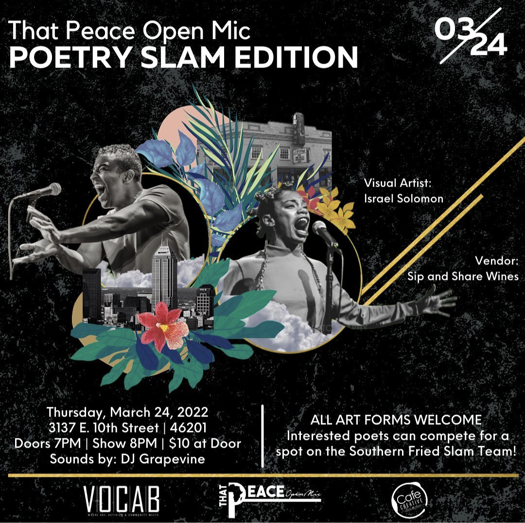 That Peace Open Mic (@thatpeaceopenmic), VOCAB (@vocabindy) and Café Creative (@creativecafeindy) are partnering to bring you a Poetry Slam!